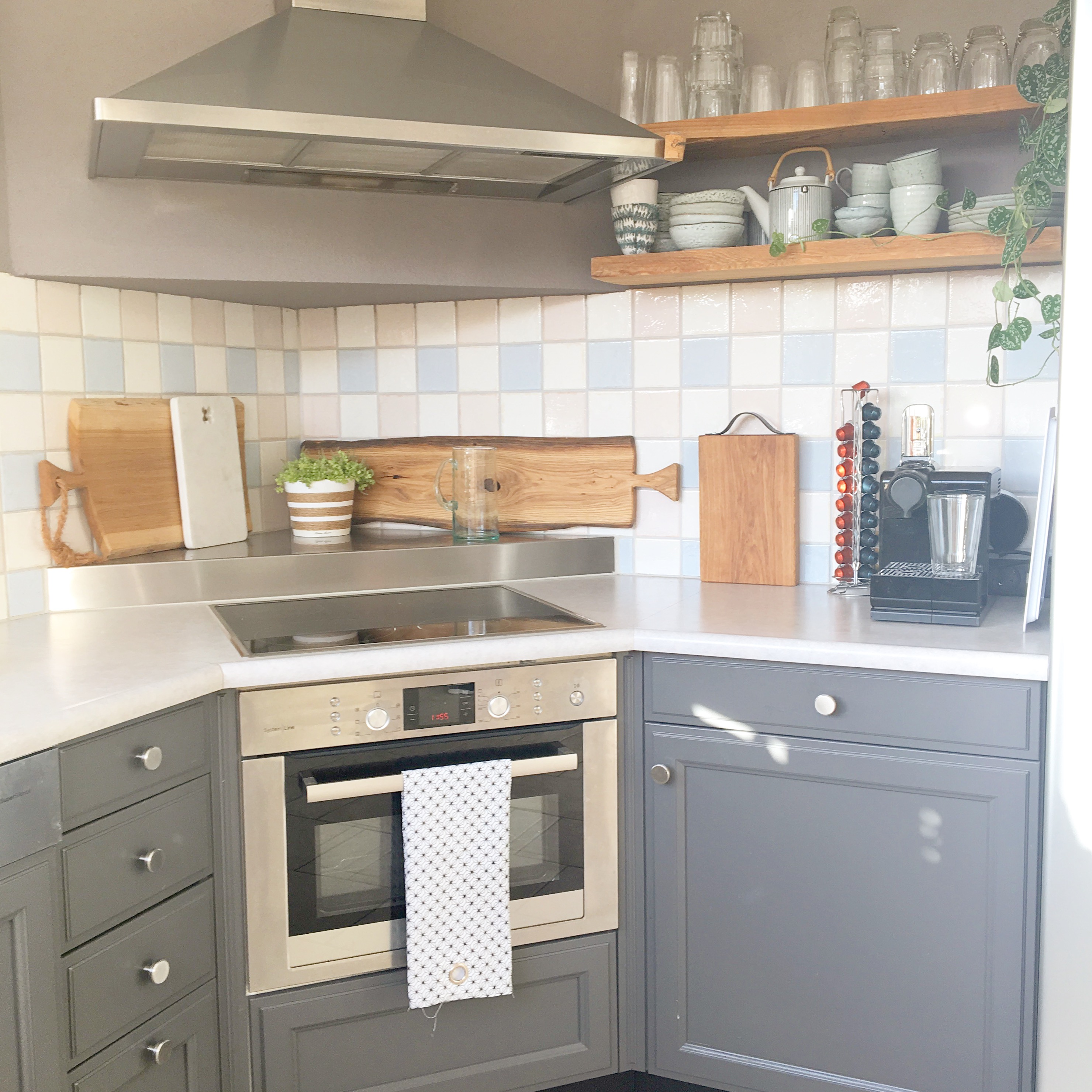Een van de planken heeft twee leren handvaten zodat je ‘m kunt gebruiken als dienblad. Ik gebruikte dit dienblad om leuke woondecoratie op de presenteren.